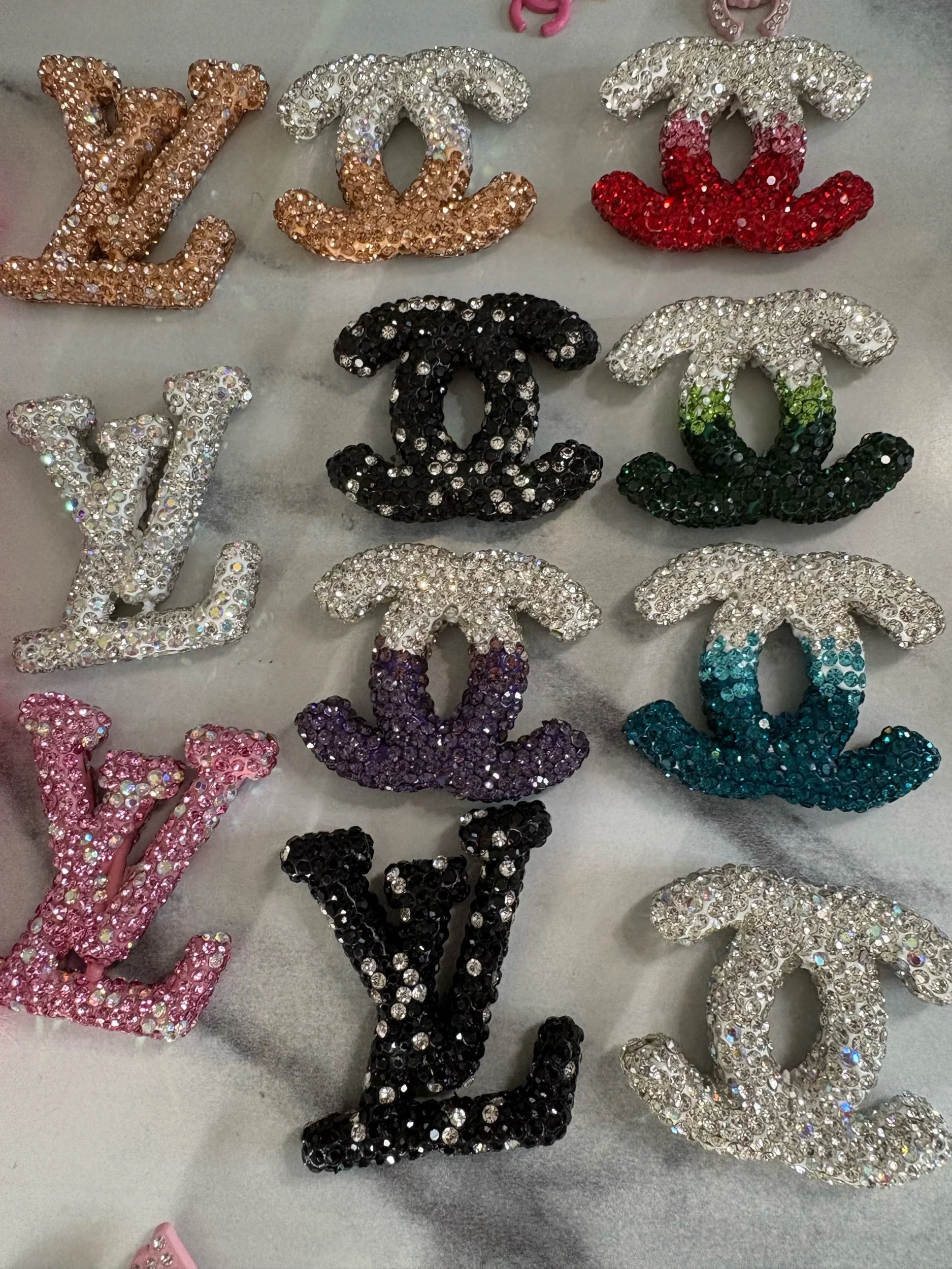 Shop › CC & LV Diamond Charms Image 1 of 2 Image 2 of 2 CC & LV Diamond Charms $3.99 This is a large metal charm that comes in many different colors and two different designers (LV & CC).Best for junk cases. Type: Ombré turquoise CC Ombré Purple CC Ombré Green CC Add To Cart Added! This is a large metal charm that comes in many different colors and two different designers (LV & CC).Best for junk cases.